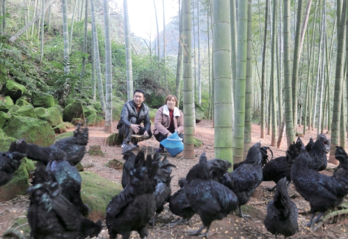 近年來,貴州省赤水市兩河口鎮黨員干部為幫助當地山區群眾增收脫貧,因地制宜引導群眾發展林下烏骨雞養殖,解決資金、技術、銷路等問題,幫助120余戶山區群眾年均純收入超5000元。圖為近日,兩河口鎮馬鹿村第一書記李茂均(左)和養殖戶在查看烏骨雞生長情況。