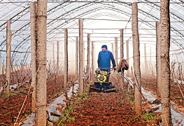 3月20日,在清徐縣青圃園種植專業合作社葡萄種植大棚內,合作社人員正在對葡萄地進行中耕除草。清徐縣在做好疫情防控工作的同時,統籌抓好春耕備耕工作。