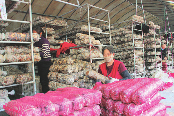 廣靈縣聯社把疫情防控和支持企業復工復產作為當前最重要的工作來抓,用“農信速度”彰顯“服務三農,服務地方經濟”的責任擔當。圖為該聯社支持的省級扶貧龍頭企業北野菌業開發公司員工正在為香菇菌棒脫皮。
