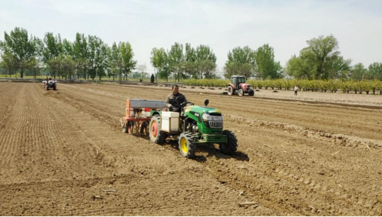 農機在柳杜鄉春播作業。