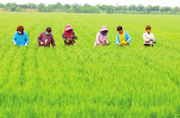 5月6日,農民正在永濟董村小麥良種培育基地的麥田裡除雜。立夏時節,正值小麥灌漿期,在董村近2000畝的小麥良種培育基地裡,當地農民紛紛抓住小麥灌漿期,對良種小麥實施除雜、澆灌、病虫害防治等管理。