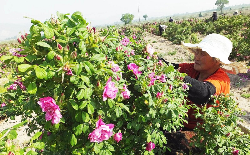 近年來,運城市加大發展以花為媒觀光旅游農業達300多萬畝,助力農民脫貧增收,每年春暖花開時,田野山間處處是爭奇斗艷盛開的玫瑰、菊花、桃花、杏花、蘋果花、海棠花以及各種中藥材花等,吸引著成千上萬的游客賞花採摘,已成為農民脫貧增收致富的新型產業。圖為5月2日,“五一”小長假第二天,隨著立夏節氣將至,在“中國歷史文化名村”運城市新絳縣澤掌鎮光村,靈通農業發展有限責任公司種植的集藥用觀光旅游脫貧增收為一體的200畝新豐一號玫瑰等喜獲豐收,玫瑰爭奇斗艷爭相開放,農民們抓緊晴好天氣搶摘搶收搶銷,吸引了眾多游客和攝影愛好者前往賞花拍照。