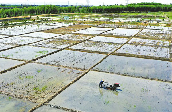 五月二十四日,太原市晉源區晉祠鎮花塔村,農民正操作插秧機在水田內勞作。晉源區近年來實施晉祠水稻產業提升振興計劃,今年預計新增晉祠大米種植一千畝,全區種植面積接近四千畝,稻農增收有了新希望。