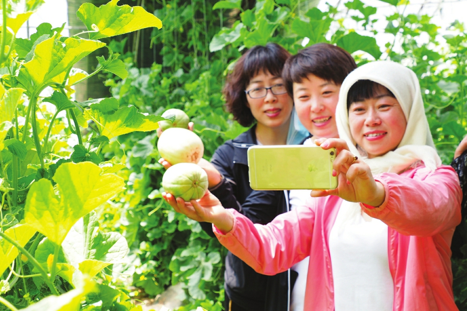5月24日,定襄富達瓜菜合作社總經理鞏先花在瓜棚直播今年第一批甜瓜的採摘過程,幾分鐘內,百余訂單已在地頭下單。