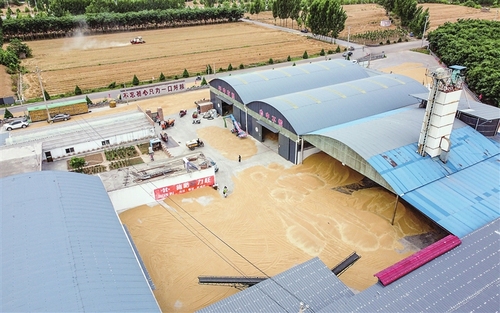 風吹金色麥浪,田間歡聲笑語。6月15日,記者走進堯都區三淇村的紅福泰農產品加工合作社,這裡一派繁忙的豐收景象,滿倉的麥粒金燦燦,送糧的車隊如長龍。62歲的張春寶站在地邊上背著手、瞇著眼、悠哉地眺望遠處隆隆作響的收割機,沉浸在豐收的喜悅中。