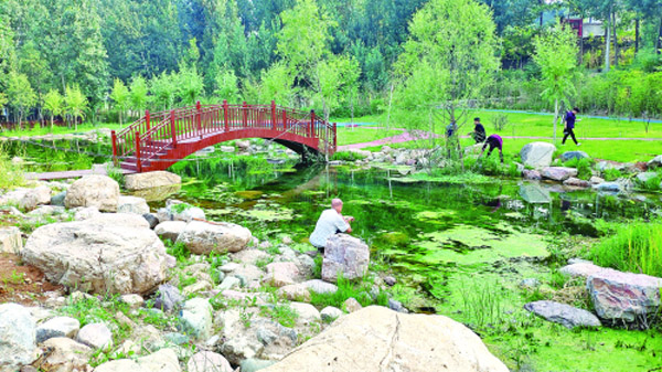 在王茅鎮西王茅村,村邊一片面積不大的楊樹林如今成了市民周末休閑的好去處。當地一個村民承包了這片樹林,提供戶外燒烤服務,一天收益最多時達到5000元。邊上不遠處就是剛完工沒多久的集水源地保護和休閑娛樂於一體的五龍泉水源地及集中供水工程,草坪、小橋、流水,幾個游人在水邊嬉戲,和小游園沒有什麼兩樣。