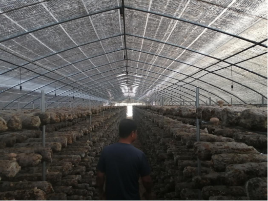 建設10萬棒翅果油樹果枝、玉米秸稈等綜合利用加工菌棒、食用菌廠房,佔地20畝,建成了10個花菇大棚,把果樹枝條粉碎加工成菌棒,年產花菇20萬斤,經濟效益150余萬元。