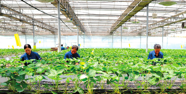 7月27日,山西農谷農民職業培訓學校實訓基地4000平方米的以色列智能連棟溫室內,新型職業農民正在對新品種草莓進行科學管理。該基地位於山西農谷高新技術孵化園核心區,承擔國家現代農業示范區農業改革與建設試點、國家一二三產融合發展試點任務,是我省培育新型職業農民,造就高素質農業生產經營隊伍的基地。目前已培訓各類農村實用技術人才2萬余人次。