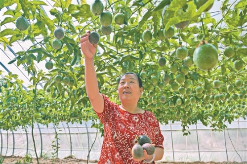 日前,記者走進后溝村百香果園,一個個渾圓飽滿的果實挂滿枝頭,村民美上心頭。