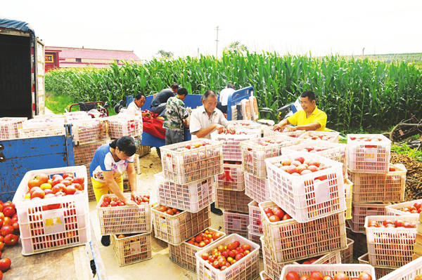 8月12日,聞喜縣后宮鄉三河口村村民正將採摘的西紅柿裝箱,准備發往外地市場。今年該鄉以三河口、界元、小庄、北白石等村為中心,發展西紅柿種植2000余畝,銷往河南等地,使貧困戶有了穩定的收入。