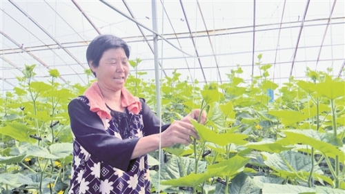 每天天剛亮,村民劉憲卿就趕到自家的蔬菜大棚裡忙碌起來,像照顧自己的孩子一樣精心侍弄西紅柿、黃瓜。他說,幸福生活就是在蔬菜大棚裡種出來的。