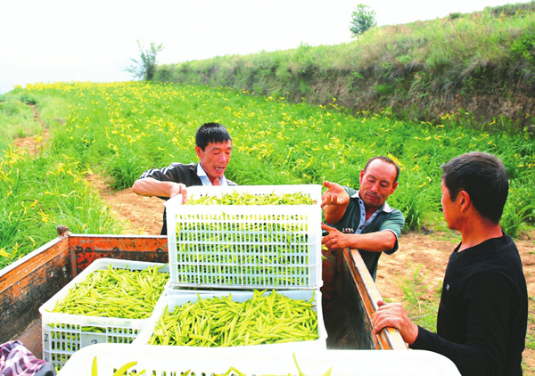 8月31日,方山縣麻地會鄉水溝灣村的村民們早早來到黃花菜種植基地,開始採摘黃花菜。該村黃花菜種植基地採取“村集體+合作社+貧困戶”的精准扶貧模式,經過2年多的精耕細作,100畝黃花菜根據當前的生長和採摘情況,預計今年村集體可收入7萬余元,村裡40多戶貧困戶通過種植、除草、澆灌、採摘、晾晒等環節,戶均可增收2000元。圖為村民們正在搬運黃花菜。
