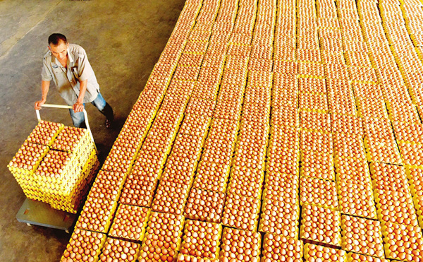 9月15日,在垣曲縣華峰鄉馬村智能化養雞場,員工正在整理新產的雞蛋。兩年前,該村引資千萬元辦起了全縣規模最大的養雞場﹔如今,該場產出的雞蛋已經銷往河南、山東等地。