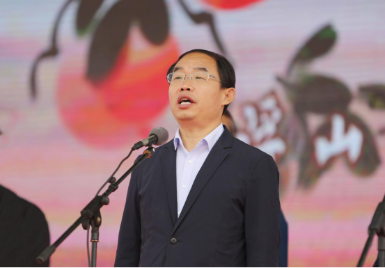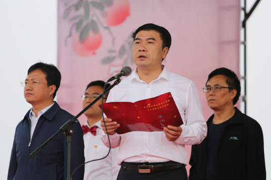 縣委書記喬飛鴻宣布:中國農民豐收節浮山東張第二屆桃王會開幕。