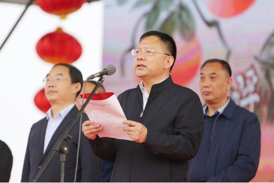 縣委副書記、政府縣長栗俊昌致辭,他代表縣委、縣政府,向全縣廣大父老鄉親和奮斗在各條戰線的同志們、朋友們,致以節日的問候和衷心的祝福。他指出,近年來,浮山縣始終把“三農”工作擺在突出位置,以高質量發展為主線,以增加農民收入為核心,扎實推動農業全面升級、農村全面進步、農民全面發展。全縣圍繞“51513”重點工作任務,立足各鄉鎮區域資源特色,開展了全方位、多維度的“院縣共建”農業科技合作,全縣五大特色產業規模提升、蓬勃發展,農業增產效果顯著、亮點紛呈,為持續鞏固脫貧成果,全面推進鄉村振興奠定了堅實的基礎。