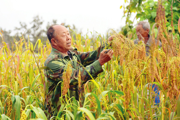 9月22日,原平市子干村村民梨園套播小雜糧獲豐收。 吉建平攝
