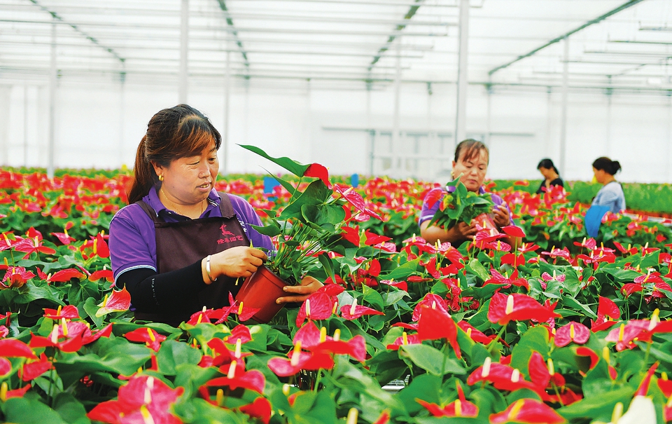 10月13日,大寧現代農業花卉雙創示范園區的花卉大棚裡,員工正在精心培育各種花卉。大寧縣充分發揮資源優勢,大力發展花卉產業,並出台優惠政策、實施招商引資、優化營商環境,以打造花卉產業集群為目標,著力延伸上下游產業鏈,使花卉產業成為縣域經濟高質量發展的優勢產業。