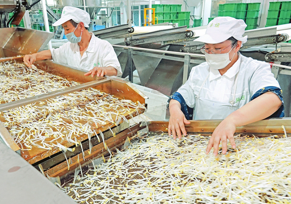 11月24日,在長治市潞芽農業開發有限公司的豆芽生產車間裡,工人們正在分揀豆芽。該公司研發出“智能電解空氣營養孵化豆芽技術”及5項專利技術並運用到生產中,目前已推向市場的綠豆芽、黃豆芽完全不需要添加任何添加劑。據了解,運用新技術的項目全部投產后,該公司將形成日產無公害綠色豆芽35噸的生產規模。