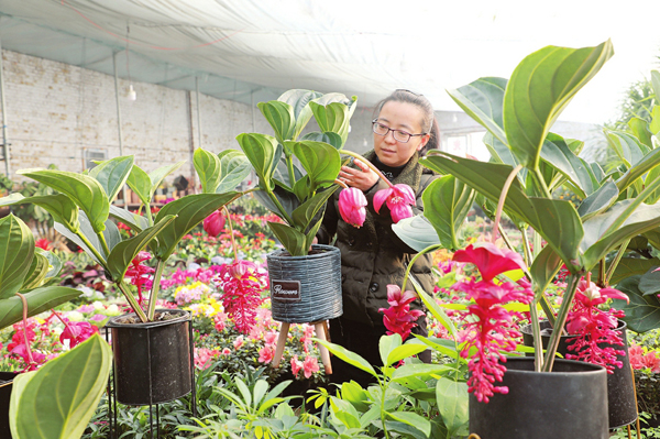 11月25日,原平市新原鄉柳巷村福地花圃基地,花農正在大棚中整理花卉。近年來,該市大力推進農業產業結構調整,積極發展盆景花卉等特色種植產業,花卉成為當地農民脫貧增收、鄉村振興的“致富花”。