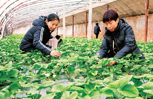 12月7日,在臨汾市廣奇農業生態園,農民正對大棚草莓進行日常管護。當日是二十四節氣中的“大雪”,當地緊抓農時進行農業管護作業,田間地頭、設施大棚內一派繁忙景象。