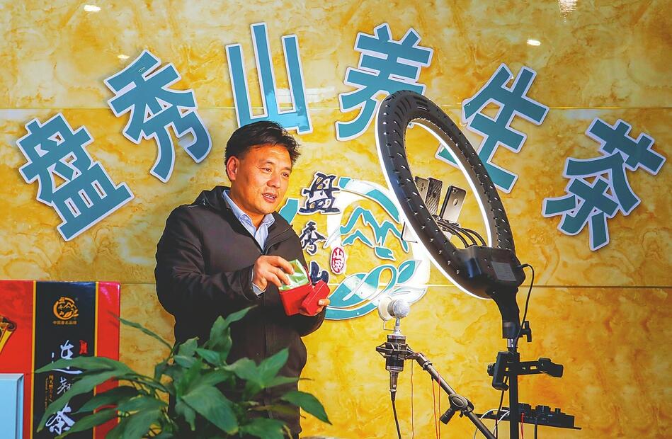 “老鐵們,講實在的,可以先下一單嘗嘗,看看我們茶葉的品質!”留言不斷刷屏的同時,定單源源不斷。中級技能職業農民、山西盤秀山農業科技開發有限公司董事長李建國在抖音直播間,熟練地向網友展示連翹茶的功效、品種。同時,不忘介紹屯留的風土人情、民俗文化和品牌特產。李建國通過直播帶貨,讓屯留盤秀山連翹茶銷路越來越廣,名氣越來越響亮。