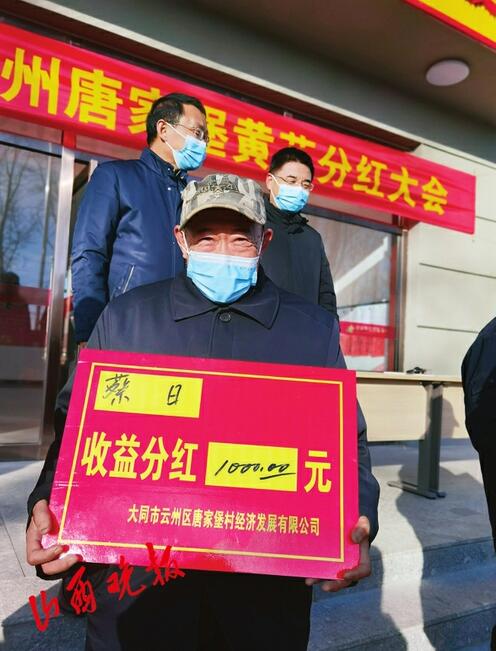 “這幾年趕上黨的好政策,特別是習近平總書記視察后,市裡、區裡的扶持力度更大了,幫咱把企業發展起來了。2020年銷售干、鮮黃花1300多噸,價值達到5000萬元左右,銷售量比前些年增加了七八百噸呢。企業發展了,村民也受益。今后隨著企業逐步做大做強,村民們受益也會越來越多,生活會越來越好。”雲州區唐家堡村經濟發展有限公司總經理楊旗在分紅現場對山西晚報記者說。