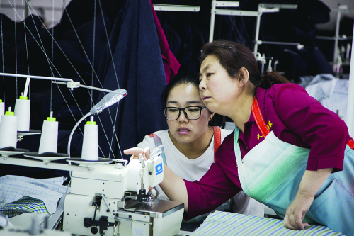 據悉,2017年9月初,天瑞服裝廠正式完成場地建設,轉運物料電梯安裝就位,生產車間按照消防安全標准建設,地面全部噴涂綠色環保材料,引進服裝裁剪設備、成衣設備、熨燙設備、包裝設備等130余台套。天瑞小區物業聘請服裝加工技師免費為搬遷群眾提供“保姆式”培訓,費用全部由天瑞物業支付。2017年11月,第一期培訓班結束,培訓女工50余人,熟練上崗30余人。目前大部分就業人員已經實現了月工資1500元保底工資的初期目標,不足1500元月工資的由天瑞物業兜底支付,確保操作女工保持良好的生產積極性,隨著操作技能的熟練,有的工人月薪已達3000元。天瑞物業負責人張天祥還積極尋求多方朋友的支持與合作,與江蘇南通、天津、香港等外貿公司接單加工出口服裝,擴大代工生產規模,先后已給美國、加拿大、法國、德國加工休閑裝、棉衣6萬余件套。