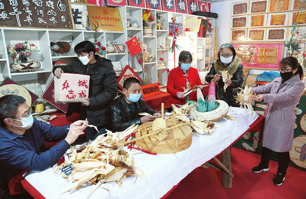 2月26日,聞喜縣篷笠草編專業合作社組織社員編織玉米皮工藝品,促進農民增收。聞喜縣篷笠草編專業合作社社長葉菊英是省非物質文化遺產草編傳承人,新冠肺炎疫情防控期間,葉菊英組織合作社社員分戶分散編織草編工藝品,由合作社統一 銷售,千方百計增加農民收入。