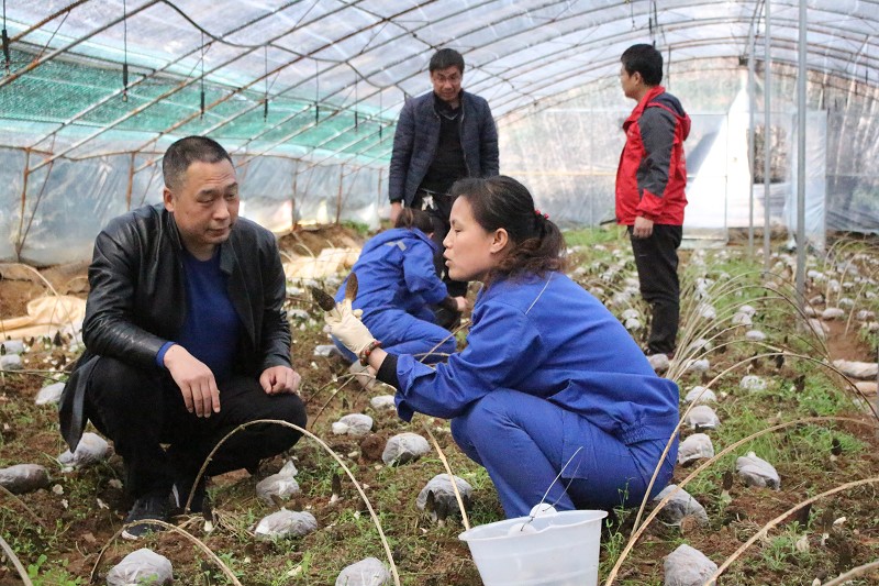 聞喜縣石門鄉以食用菌為主導產業,通過“合作社+基地+黨支部+農戶”的經營模式,由合作社統一技術指導、統一品牌銷售。目前全鄉香菇種植規模300萬棒,參與務工人員400余人,年產值2000萬元以上,每人每年收入2萬余元,帶動貧困戶37戶160余人脫貧增收,已成為運城市最大的反季節食用菌培植基地。4月13日,該鄉黨委書記楊海軍(左一)和工作人員在羊肚菌培植基地查看菌菇長勢。