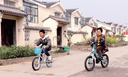 近年來,江蘇省宿遷市宿豫區把農房改善作為實施鄉村振興戰略、深化農村改革和推進城鄉融合的重要抓手,已建成新型農村社區12個,改善農民住房條件一萬余戶。圖為日前新庄鎮朱瓦新型農村社區的孩子們在自己的新家園內歡快地騎著單車。