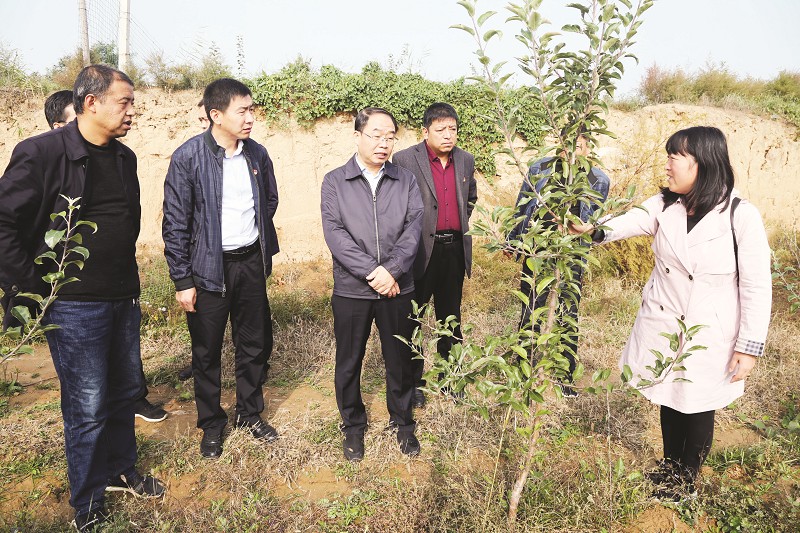 縣委書記喬飛鴻(左三)在響水河鎮調研蘋果產業