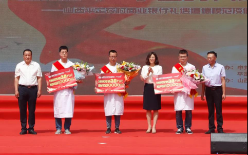活動中,平定縣縣委常委、宣傳部長王玉卿啟動“山西平定農村商業銀行禮遇道德模范授信儀式”。並與平定縣人大副主任劉順彬、政協副主席劉同禮共同為平定縣醫療集團援助武漢的三名醫療隊員當場授予30萬元特別授信以及10000元慰問金,以激發社會向上向善的強大精神力量。