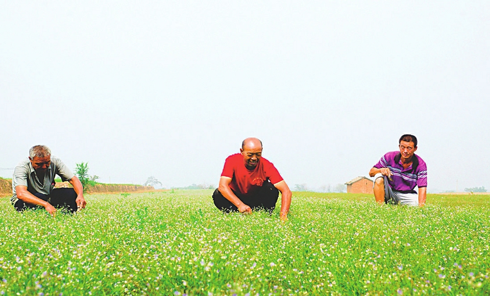 農民正在草藥地裡除草。宋磊攝