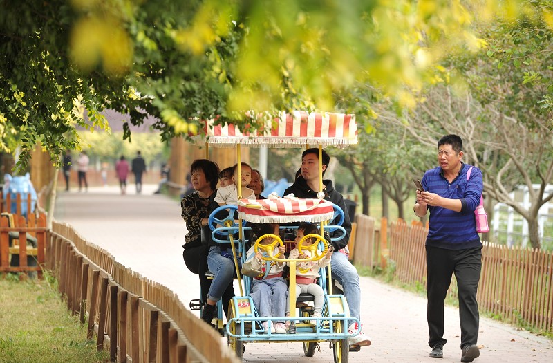 近年來,河北省河間市在美麗鄉村建設中,整合當地特色農村旅游資源,構建“村集體+旅游公司+村民”運營模式,發展鄉村旅游,形成鄉村經濟增長新亮點。圖為游客在該市北豐爾庄村興豐生態農場觀光游玩。