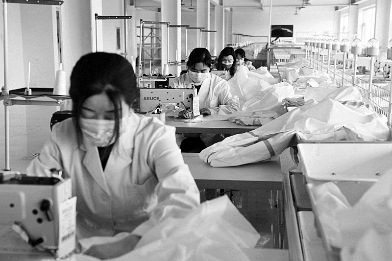 位於河北省張家口市宣化區洋河南鎮的斯普榮服飾有限公司是一家扶貧工廠。新冠肺炎疫情發生后,企業新建無菌車間,引進新的生產線,從生產校服、工裝等全面轉產防護服生產,助力疫情防控。圖為張家口市宣化區斯普榮服飾有限公司工人在防護服生產線上工作。