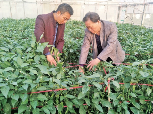 西北農林大學涇陽蔬菜試驗站內,專家正在進行辣椒新品種種植實驗。 耿蘇強 攝