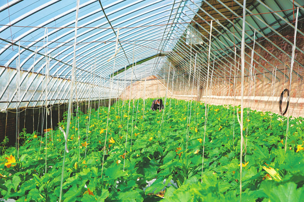 5月14日,方山縣峪口鎮橋溝村綠色蔬菜農民專業合作社社員正在溫室大棚裡採摘西葫蘆。該合作社共有11個大棚,採取“村集體管協會、協會控合作社、合作社帶農戶”的生產經營模式,每年可為22戶農民增加收入25萬元,已帶動30人脫貧增收。