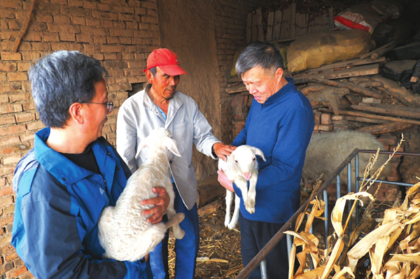 5月6日,渾源縣蔡村鎮文家庄村,省文聯駐村扶貧工作隊在未脫貧戶孟昌家幫助其申請小額貼息貸款。孟昌是村裡的養羊專業戶,因病致貧,扶貧工作隊為他制訂通過貼息貸款走規模養殖的路徑,在外打工的兒子也回來與他一起養羊。
