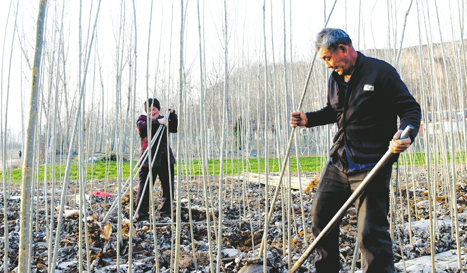 二月二十三日,垣曲縣長直鄉魯家坡村育苗專業戶馬吉群正在挖“速生楊”樹苗,准備銷售。近年來,該縣涌現出一批培育苗木專業合作社和育苗專業戶,為當地造林提供了優質樹苗。