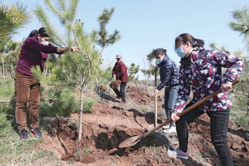 新沂市干部群眾在馬陵山丘陵山區植樹。
