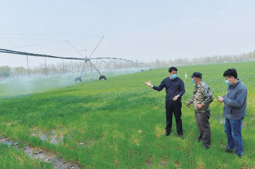 王守財是平頭村灌溉設施的管護員。他告訴記者,市區兩級農業部門為平頭村所有農業灌溉機井配備了25套噴灌施肥設備,春季調配水溶性肥料,實現了灌溉與施肥一體化。村裡也組建了專業水肥管理隊伍,統一進行灌溉施肥,促進水肥一體化技術落地。