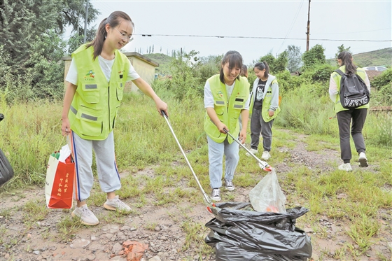 8月15日上午,來自山西晉中高校新區志願聯盟的30余名志願者,在榆次區涂河長凝段開展沿線巡河護河、清理河道垃圾、保護母親河宣傳、採集和化驗水質等保護環境志願服務活動。圖為大學生志願者正在揀拾河邊垃圾、鏟除河岸雜草、化驗河道水質。