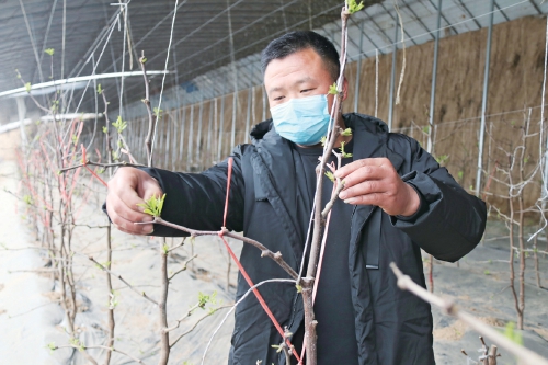 圖為內黃縣高堤鄉西渡村種植大戶劉軍偉正在管理大棚冬棗樹。 資料圖