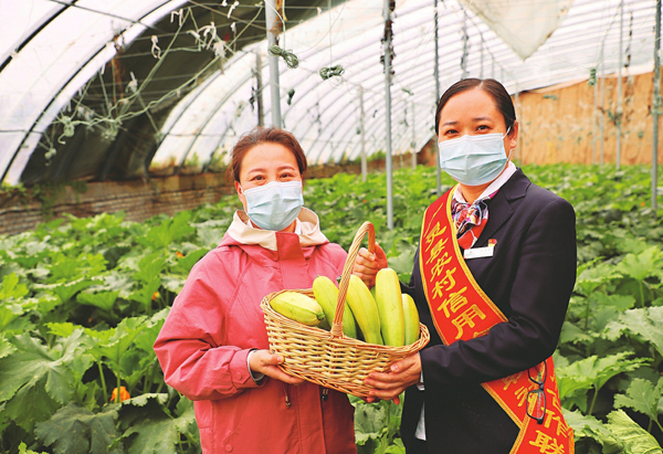 廣靈縣聯社支持縣域蔬菜大棚復工復產,復工復產率達100%,在疫情期間全速為縣域供應蔬菜達900余萬斤。圖為縣域居民採摘的新鮮葫蘆。(孟瑞芬 攝)