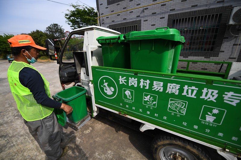 從2020年初開始,浙江省長興縣長崗村推進農村生活垃圾精准分類,由青年志願者進行上門宣傳普及,並制定垃圾分類得分獎懲措施。該村還搭建垃圾分類智能大數據管理雲平台,實現了各類垃圾的“前端分類收集、中端分類運輸、末端分類處置”等各環節的實時數據上傳和監控,為垃圾減量化、資源化、無害化處理提供數據支撐。圖為保潔人員在分類收取村民門口的垃圾並進行信息上傳。垃圾車上都有攝像頭和二維碼識別裝置,可以識別每個垃圾桶的信息並上傳到雲平台,由后台根據垃圾分類情況給每戶村民打分。