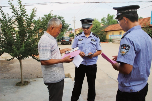李文杰是河崖社區的警長,每天穿著警服,騎著警用電動車在社區下轄的村子裡穿行。在河崖社區,和李文杰做同樣工作的還有兩名民警。他們每天都在社區巡邏2次,每次一個多小時,哪裡有警情就及時出警。李文杰說:“以前我們在鎮上等老百姓來,現在是我們主動下去巡邏,同樣是調解一個糾紛,老百姓看見穿著警服、帶著大蓋帽的警察心裡踏實多了。”