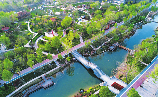 4月20日,市民在稷山縣城西民樂園游玩。近年來,稷山縣強力推進“大縣城”建設,突出稷王文化內涵,打造富有稷山特色的魅力城市,汾河公園、城東民悅園、環城綠化等水系綠地建設穩步推進,初步形成了“三面環水、四邊有林”的生態格局。