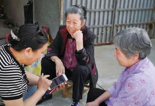 中州社區黨總支書記周活香入戶為轄區內高齡老人辦理社保卡網上年檢。