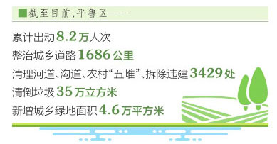 據了解,自去年5月份以來,平魯區打響以“三清三治三提升”為主要任務的城鄉人居環境攻堅戰,全區廣大機關、農村、社區黨員干部,離退休老黨員及工青婦組織帶頭行動,全民參戰。截至目前,平魯區累計出動8.2萬人次,整治城鄉道路1686公裡,清理河道、溝道、農村“五堆”、拆除違建3429處,清倒垃圾35萬立方米,新增城鄉綠地面積4.6萬平方米。全區人居環境不僅有了質的提升,也得到了廣大群眾的一致認可。