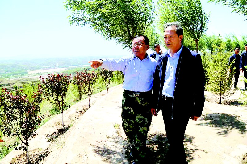 李淑輝(左)與上級領導一起在黃金山萬畝生態經濟工程區調研